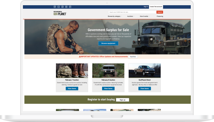 Bulk sales available GovPlanet offers multiple ways for government agencies to purchase in accordance with your inventory needs. Bulk purchases, outside of the auction, are also available through our Wholesale team.